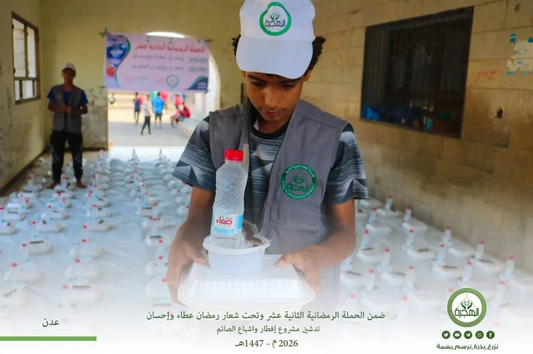 في أجواءٍ إيمانيةٍ تتنزل فيها الرحمات، وتتعاظم فيها القُرُبات، انطلقت مؤسسة الهجرة الخيرية للتنمية مع مطلع شهر رمضان المبارك لعام ١٤٤٧هـ الموافق ٢٠٢٦م، في تنفيذ مشروع إفطار وإشباع الصائم، ضمن الحملة الرمضانية الثانية عشر، حاملةً شعارها الإنساني النبيل: (رمضان عطاء وإحسان)، وذلك بدعمٍ كريم وتمويلٍ سخي من فاعلي الخير الذين جعلوا من عطائهم جسراً يصل إلى قلوب المحتاجين.