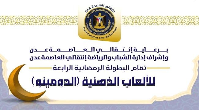 برعاية ودعم القيادة المحلية لـ المجلس الانتقالي الجنوبي في العاصمة عدن، ينظم قسم الشباب والرياضة في الهيئة التنفيذية لانتقالي مديرية صيرة البطولة الرمضانية الرابعة للألعاب الذهنية (الدومينو)، ضمن الأنشطة الشبابية والرياضية المصاحبة لشهر رمضان المبارك.