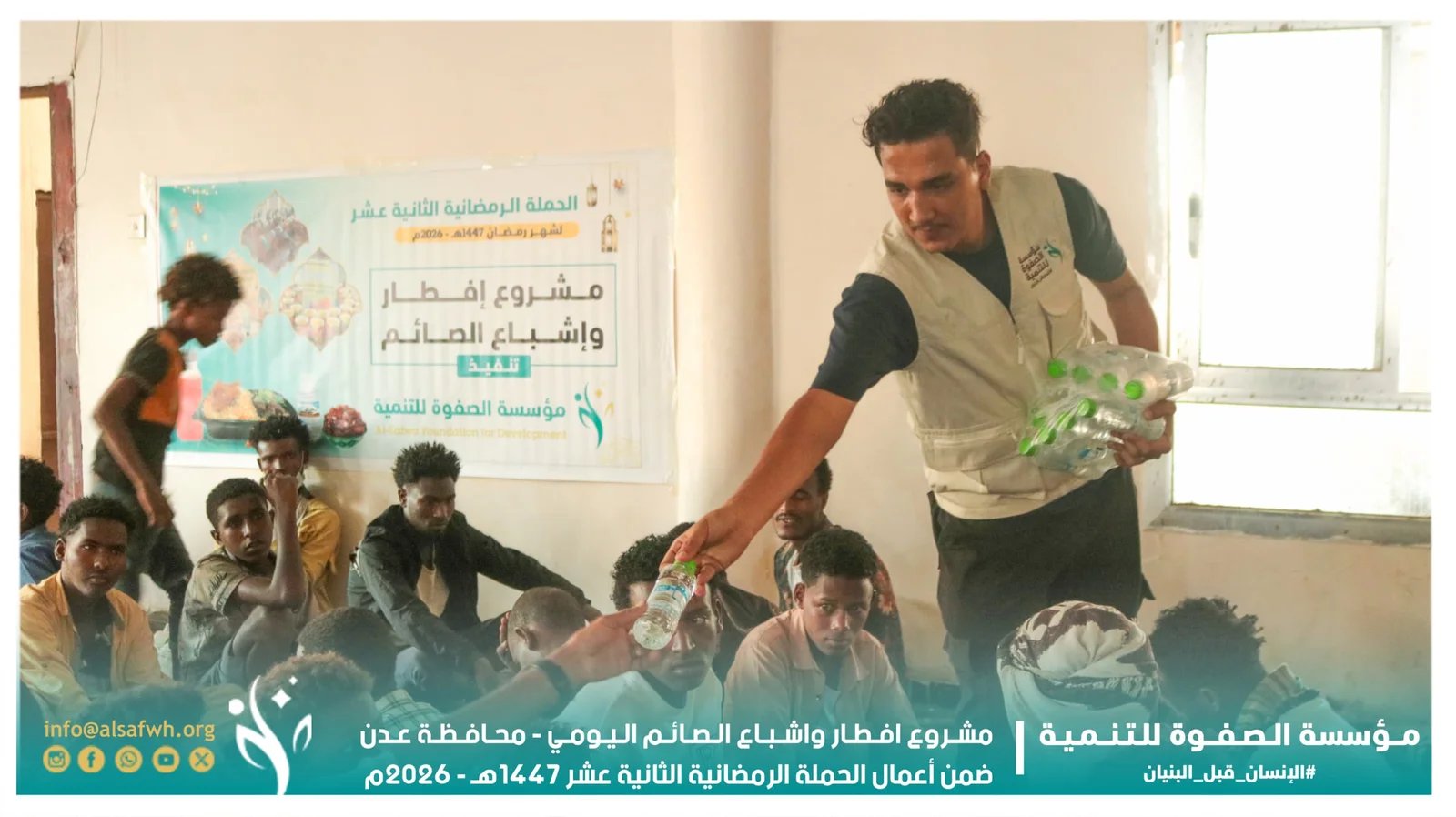 تواصل مؤسسة الصفوة للتنمية جهودها الخيرية والإنسانية ضمن حملتها الرمضانية الثانية عشرة «يا باغي الخير أقبل» لشهر رمضان المبارك 1447هـ، والتي تنفذها في العاصمة عدن وعددٍ من المحافظات المجاورة، بهدف التخفيف من معاناة الأسر المحتاجة وتعزيز قيم التكافل المجتمعي خلال الشهر الفضيل.