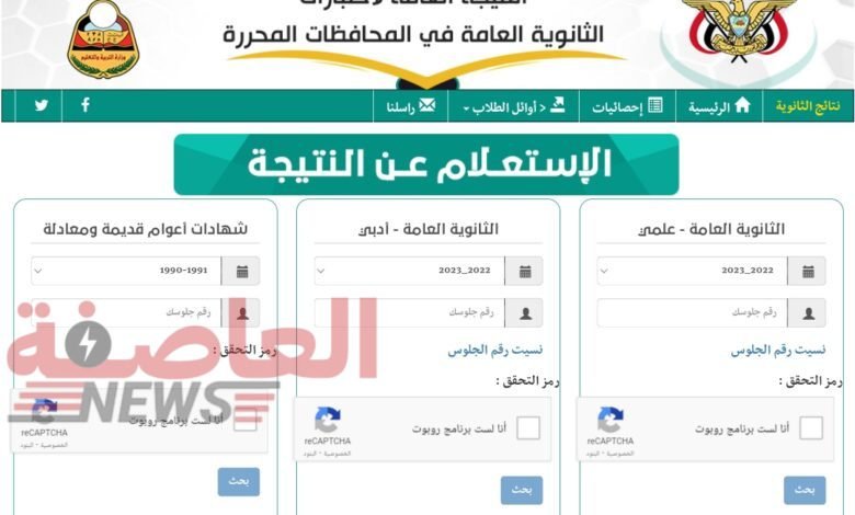 يمكن أيضاً الاستعلام عن نتائج الثانوية العامة 2024 من خلال موقع الإدارة العامة للاختبارات، سواء كنت تتبع حكومة عدن أو حكومة صنعاء. يمكن اتباع الخطوات التالية للحصول على النتيجة: