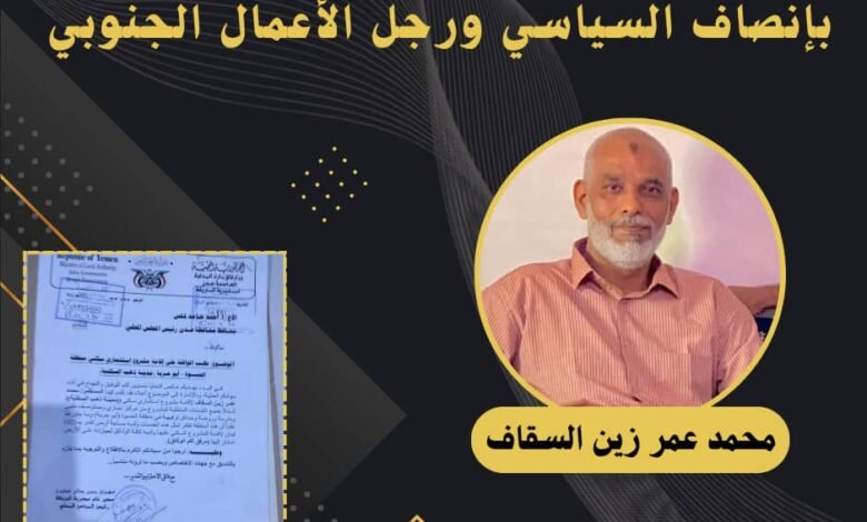 تابعنا باهتمام كبير محاولات الضغط الشعبي والمناشدات التي أطلقتها عدد من الشخصيات الوطنية ورؤساء المكونات السياسية والمدنية وبعض الزملاء الصحفيين والإعلاميين التي وجهت إلى نائب رئيس مجلس القيادة الرئاسي أبو زرعة المحرمي، لمطالبته بالتدخل لإنصاف رجل الأعمال السيد محمد زين السقاف، رئيس حزب العدالة والديمقراطية، وتمكينه من قطعة الأرض التي اشتراها من ماله الخاص قبل سنوات بهدف إقامة مشروع استثماري يخدم المدينة وسكانها.