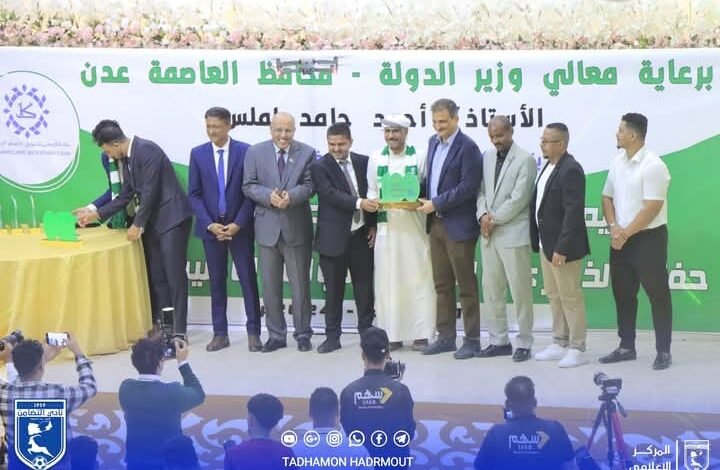نادي وحدة عدن يكرم نادي تضامن حضرموت بدرع تاريخي