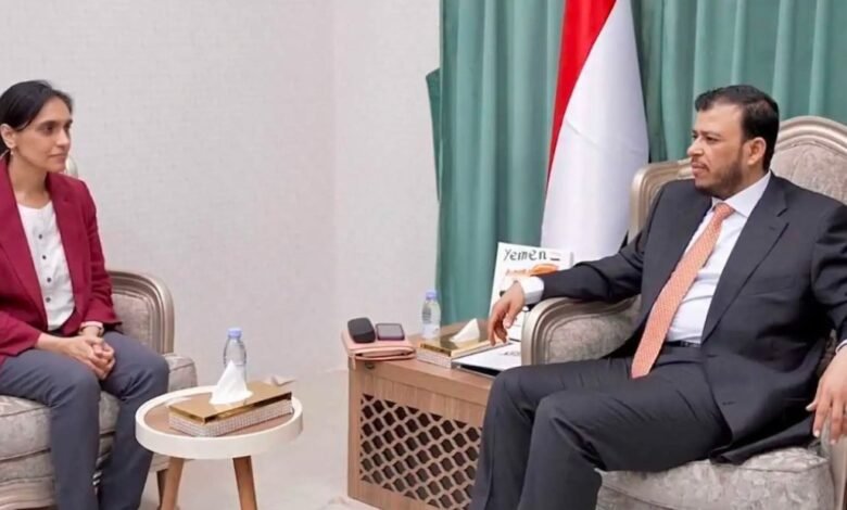 جاء ذلك خلال لقائه مع سفيرة المملكة المتحدة لدى اليمن، عبده شريف، لبحث العلاقات الثنائية، ومستجدات الأوضاع الوطنية والإقليمية، وسبل التنسيق بين البلدين الصديقين إزاء مختلف القضايا ذات الاهتمام المشترك، بحسب وكالة الأنباء الحكومية (سبأ).