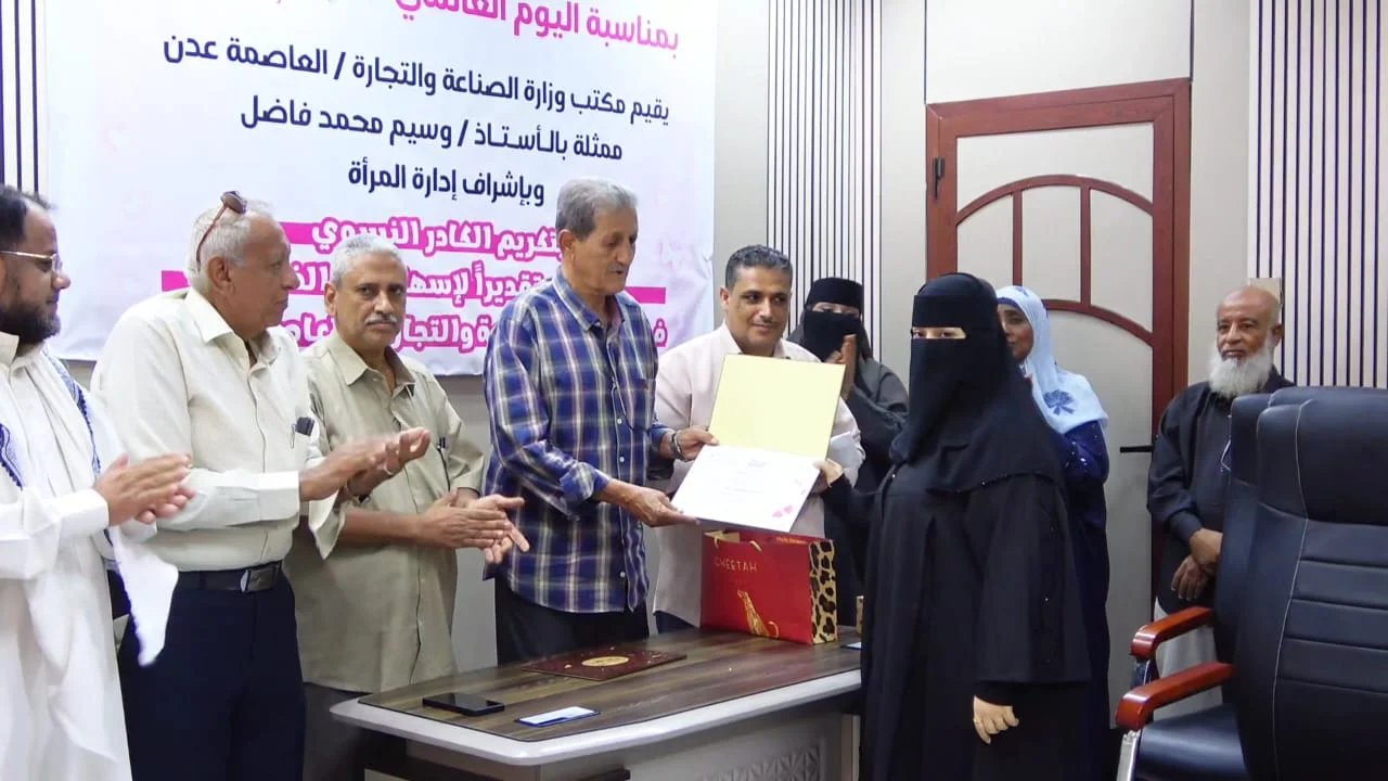 كرم مكتب الصناعة والتجارة بالعاصمة عدن، موظفات وكوادر فرع المكتب في مديريات عدن، بمناسبة يوم المرأة العالمي (8 مارس)، وذلك بدعم وسيم محمد العُمري مدير عام مكتب الصناعة والتجارة بالعاصمة عدن.