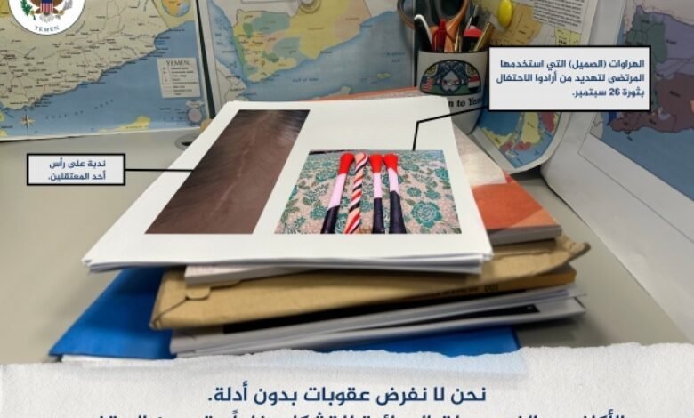 وقالت السفارة الأمريكية لدى اليمن، في تغريدة على حسابها في منصة “إكس”، الأربعاء، إن الولايات المتحدة لا تفرض عقوبات دون أدلة، كما هو الحال مع “اللجنة الوطنية الحوثية لشؤون الأسرى” التابعة للحوثيين، ورئيسها عبدالقادر حسن يحيى المرتضى، “لارتباطهما المباشر بانتهاكات ضد السجناء المحتجزين في معتقلات تديرها الجماعة في اليمن”.