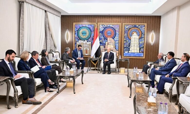 وفي اللقاء وضع رئيس مجلس القيادة الرئاسي، السفراء الاوروبيين امام تطورات الساحة الوطنية، والتدخلات الاوروبية المطلوبة لدعم الاقتصاد اليمني، وتخفيف المعاناة الانسانية التي فاقمتها الهجمات الارهابية الحوثية على المنشآت النفطية، وسفن الشحن البحري.