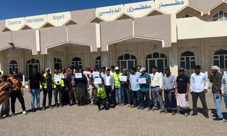 نفذ موظفو مطار سقطرى، وقفة احتجاجية، رفضًا لتسليم مطار الجزيرة لشركة إماراتية، قابلتها قوات المجلس الانتقالي المسيطرة على الأرخبيل بالاعتداء عليهم وطردهم من المطار.