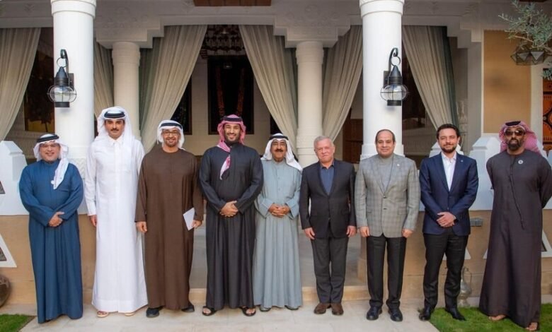 ونوه حساب أخبار ولي عهد البحرين باللقاء الأخوي، وكتب على منصة “إكس”: “نيابة عن جلالة الملك حمد بن عيسى يشارك ولي العهد رئيس مجلس الوزراء سلمان بن حمد في الاجتماع الذي عُقد في السعودية بدعوة من صاحب السمو الملكي الأمير محمد بن سلمان بن عبد العزيز آل سعود، ولي العهد رئيس مجلس الوزراء بالمملكة العربية السعودية، مع قادة دول مجلس التعاون لدول الخليج العربية وجلالة ملك المملكة الأردنية الهاشمية ورئيس جمهورية مصر العربية”.