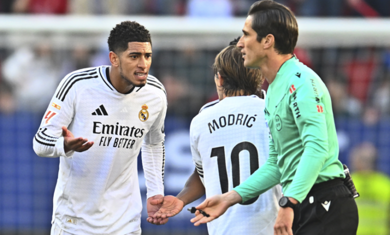 وشهدت مباراة ريال مدريد وأوساسونا، التي أقيمت السبت الماضي، حالة من الاستياء العام بعد قرار الحكم الدولي خوزيه لويس مونييرا بإشهار بطاقة حمراء مباشرة في وجه بيلينغهام قبل نهاية الشوط الأول، وذلك عقب تلفظ اللاعب بكلمات باللغة الإنجليزية في وجه الحكم.