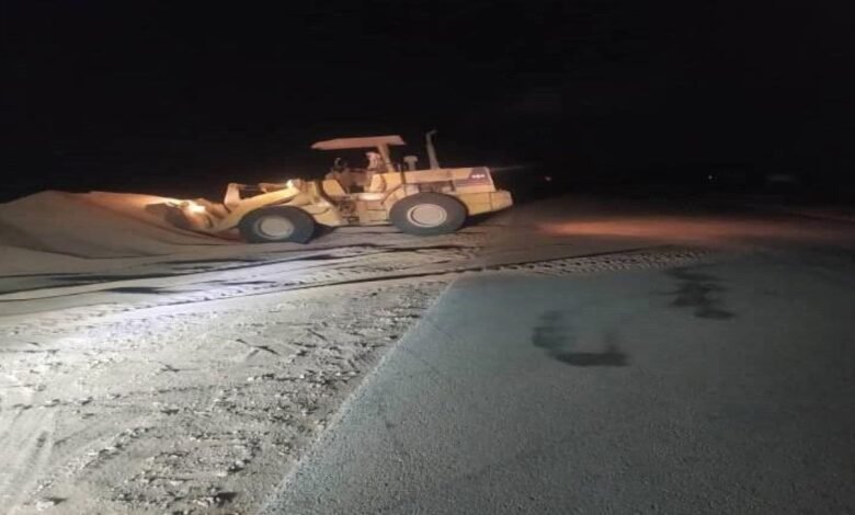 وتأتي هذه الأعمال بتمويل من السلطة المحلية بالمهرة، وتهدف إلى تسهيل حركة المركبات وضمان سلامة المسافرين، خاصة مع التراكم المستمر للرمال بسبب العوامل الطبيعية، مما يؤثر سلبا على انسيابية المرور.