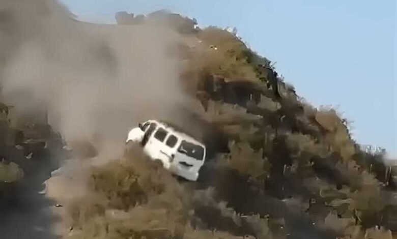 وأظهر مقطع فيديو متداول على منصات التواصل الاجتماعي اللحظات المرعبة لانزلاق الحافلة وسقوطها من نقيل “حصن حب”، بينما تعالت صرخات النساء اللواتي كنَّ قد ترجلن من الحافلة قبل وقوع الحادث.