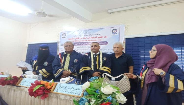 نال الباحث مأمون حسين عبدالله عوض السعيدي درجة الماجستير بامتياز من كلية الآداب _ قسم علم الإجتماع _ جامعة عدن ، بعد ان ناقش رسالته العلمية الموسومة بـ( دور القيم الدينية في الحد من ظاهرة الجريمة) ، دراسة سوسيولوجية في العاصمة عدن.