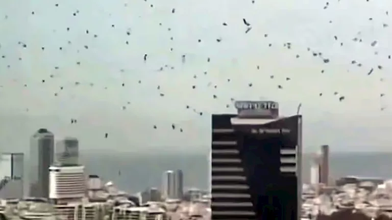 أظهرت مقاطع فيديو “درامية” انتشرت على نطاق واسع آلاف الغربان وهي تُحلق فوق المباني الشاهقة، بما في ذلك “أبراج عزرائيلي” الشهيرة، مما خلق سحابة سوداء متحركة أثارت ذهول السكان.