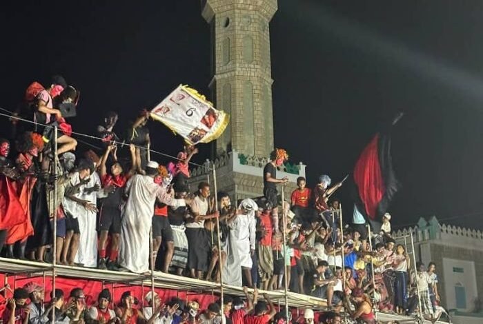وأفادت مصادر محلية أن الحادث وقع في إحدى الساحات العامة بحي الخور، حيث كان المدرج الحديدي المؤقت، والمصنوع من سقالات معدنية، يكتظ بعشرات الشبان الذين اعتلَوه للاحتفال بفوز فريقهم. وانهار المدرج تحت ضغط الحشود، ما أدى إلى سقوطهم فوق متفرجين كانوا أسفله.