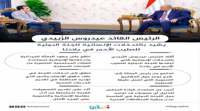 الرئيس الزُبيدي يثمن التدخلات الإنسانية لبعثة الصليب الأحمر.. انفوجرافيك
