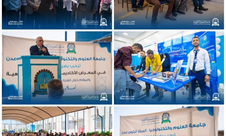 جامعة العلوم والتكنولوجيا – عدن تدشن المعرض الأكاديمي للتخصصات الجامعية 2025–2026