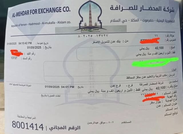 أعرب عدد من المعلمين في العاصمة عدن عن استيائهم من خصم مبالغ مالية من “حافز المحافظ” الذي صُرف لهم مؤخرًا، حيث أكدوا أن المبلغ المقرر البالغ 50 ألف ريال لم يُسلَّم كاملًا، إذ وصل إلى أيديهم 42,100 ريال فقط بعد خصم نحو ثمانية آلاف ريال.