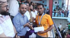 وكاس هداف الدوري للاعب شمسان حوف عبدالله فرج فيما فاز مصطفى سالم حارس القزعة بقفاز افضل حارس في الدوري.