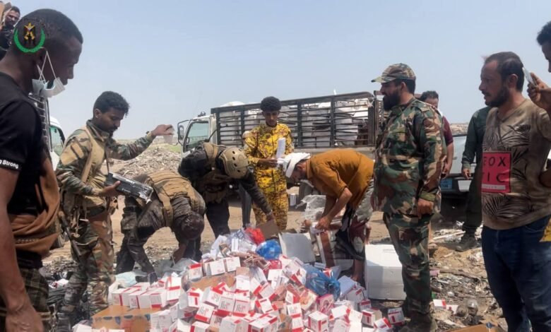 بإشراف نيابة الصناعة والتجارة… قوات الحزام الأمني تتلف كميات كبيرة من الأشرطة المخدرة والمبيدات والسجائر المهربة
