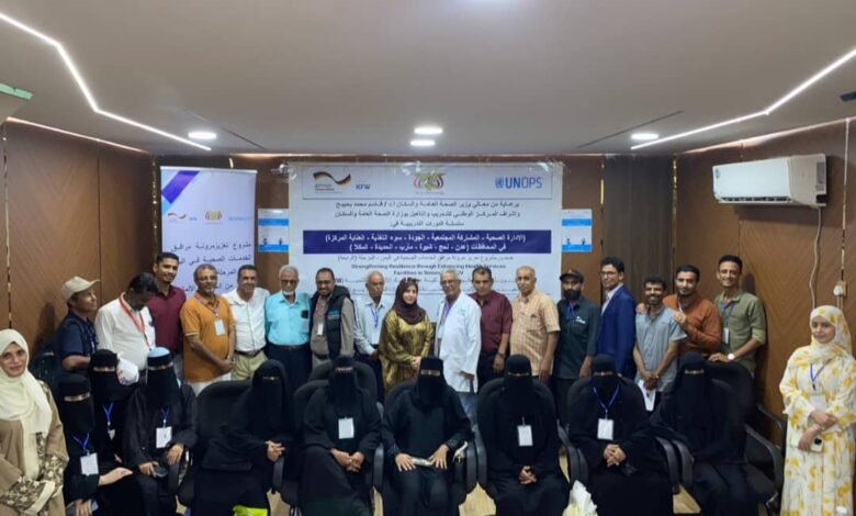اختتمت اليوم في العاصمة عدن أعمال الدورة التدريبية في الإدارة الصحية، التي نظمت برعاية معالي وزير الصحة العامة والسكان أ.د/ قاسم محمد بحيبح وإشراف المركز الوطني للتدريب والتأهيل بوزارة الصحة العامة والسكان وبمشاركة نخبة من الكوادر الطبية والإدارية من مختلف المرافق الصحية بمحافظة عدن.
