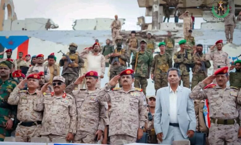 وشهد الميدان عرضاً مهيباً نفذته الوحدات القتالية المشاركة، عكست من خلاله مستوى الجاهزية والانضباط العسكري والروح القتالية العالية التي تتحلى بها قوات الدعم والإسناد والحزام الأمني في محافظة أبين.