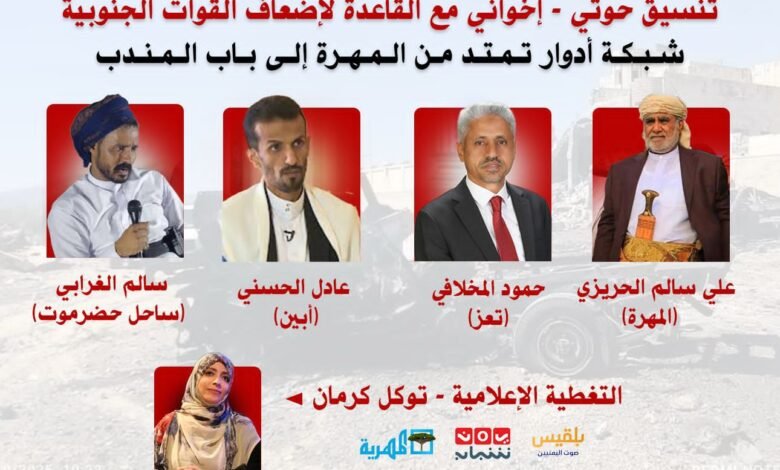 تقرير: تنسيق حوثي – إخواني مع القاعدة لإضعاف القوات الجنوبية… شبكة أدوار تمتد من المهرة إلى باب المندب