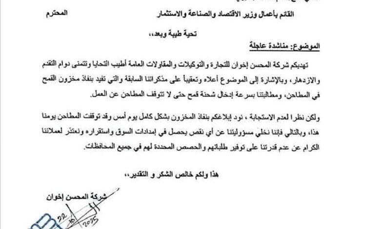 توقفت مطاحن وصوامع البحر الأحمر في مدينة الحديدة عن العمل بشكل كامل بعد نفاد مخزون القمح، ما ينذر بأزمة غذائية حادة في مناطق سيطرة الحوثيين. شركة “المحسن إخوان”، المالكة للمطاحن، حمّلت وزارة الاقتصاد الحوثية مسؤولية الأزمة، متهمة إياها بالتقاعس عن إدخال شحنات جديدة رغم التحذيرات المتكررة.