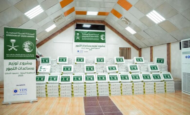 مركز الملك سلمان يوزع التمور في ساحل حضرموت ضمن مشروع المساعدات الغذائية
