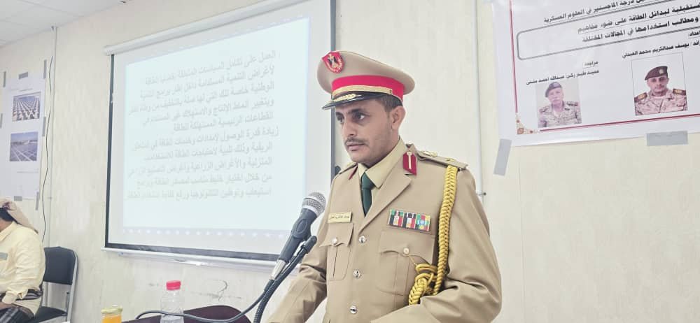 تناولت رسالة المقدم العبدلي موضوعاً حيوياً بالغ الأهمية بعنوان: “النظرة المستقبلية لبدائل الطاقة على ضوء مفاهيم ومصادر ومطالب استخدامها في المجالات المختلفة”.