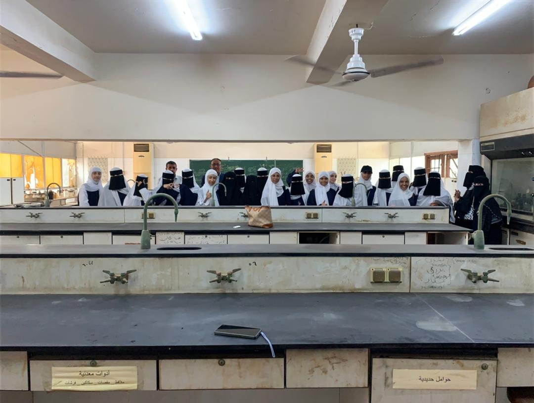 بعد ذلك، تم القيام بجولة في مكتبة الكلية، ثم الانتقال إلى مختبرات الكيمياء، حيث كان في استقبال الطلاب كلٌّ من أ. كفى وأ. مريم وأ. سحر وأ. محسنة وأ. فدوى. وقد قدمن للطلاب مجموعة من التجارب الكيميائية التعليمية، تخللها التعرف على مباني وأقسام الكلية، ومختبرات الكيمياء، والمواد الكيميائية وفوائدها ومخاطرها وكيفية التعامل السليم معها، إضافة إلى الاطلاع على عدد من الأجهزة المستخدمة في المختبرات، وشرح علاقة الكيمياء بالحياة والإنسان والبيئة.