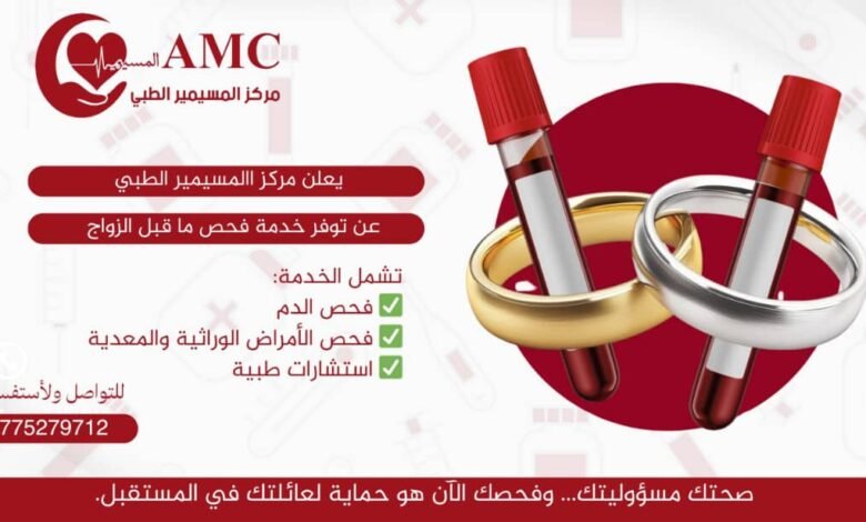 مركز المسيمير الطبي يعلن فحوصات وتحاليل مخبرية للمقبلين على الزواج