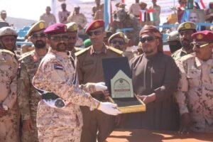 وخلال الحفل، هنأ المحافظ الثقلي الخريجين .. مشيداً بما اكتسبوه من مهارات وجاهزية قتالية وانضباط عسكري، مؤكّداً أن هذا التخرج يمثل خطوة مهمة في تعزيز قدرات محور سقطرى وترسيخ الأمن والاستقرار في الأرخبيل، ثمّناً جهود الطواقم التدريبية التي أسهمت في إعداد هذه الدفعة وتأهيلها وفق معايير عالية.