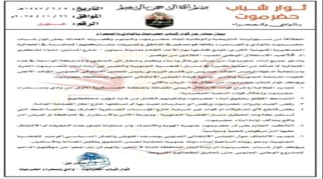 وحدد البيان مجموعة من المطالب أبرزها إخراج قوات المنطقة العسكرية الأولى من وادي وصحراء حضرموت وإحلال قوات النخبة الحضرمية لتأمين المحافظة، إضافة إلى التأكيد على حقوق أبناء حضرموت في إدارة شؤون محافظتهم ورفض أي عبث بثرواتها.