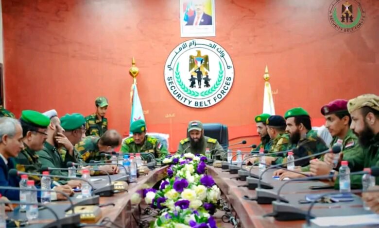 العميد الوالي يترأس اجتماعا بقيادات الحزام الأمني ويشيد بالأداء المتميز في العرض العسكري