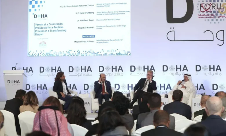 ركَّزت الجلسة الحوارية الرئيسية التي شهدها اليوم الأول من «منتدى الدوحة» على تطورات جهود حلّ الأزمة اليمنية، وبحث أبرز التحديات التي تعيق الوساطة وتقوِّض عملية السلام. وعدّ متحدثون في الجلسة الحوارية أن اليمن أمام مفترق طرق بين معوقات سياسية في ظل إعادة تشكيل الإقليم.