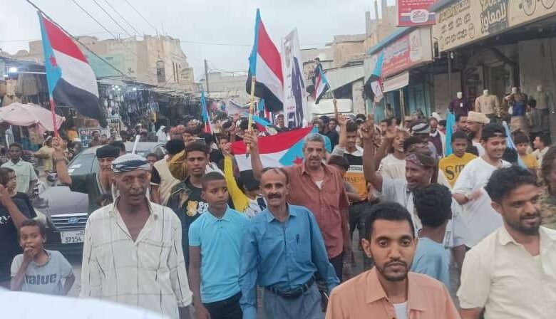وخرج الالآف من أبناء محافظة لحج في مسيرة جماهيرية حاشدة جابت شوارع الحوطة، رافعين فيها صور الرئيس الزُبيدي، ومرددين الهتافات المطالبة بإعلان دولة الجنوب العربي