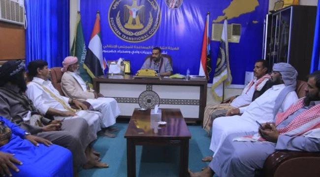 انتقالي وادي وصحراء حضرموت يلتقي عددا من شيوخ وشخصيات من وادي وصحراء حضرموت