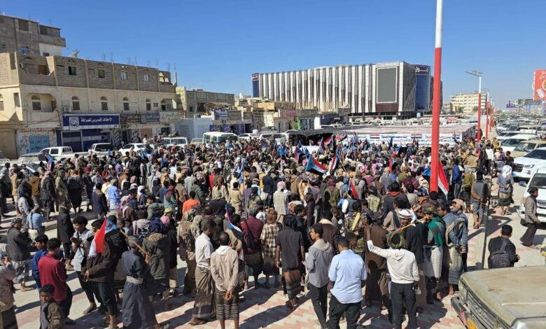 مخيم الاعتصام المفتوح بمدينة عتق يستقبل وفدًا جماهيريًا من أبناء مديرية جردان
