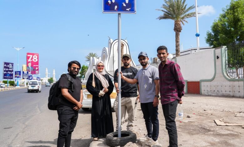 تركيب لوحات إرشادية بلغة الإشارة في بالعاصمة عدن