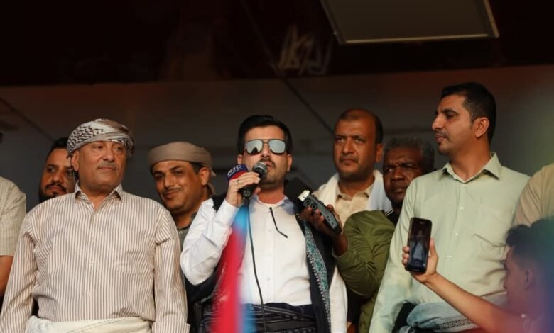 نائب وزير المياه والبيئة وعدد من نواب الحكومة يشاركون جماهير شعب الجنوب العربي بساحة العروض بخور مكسر