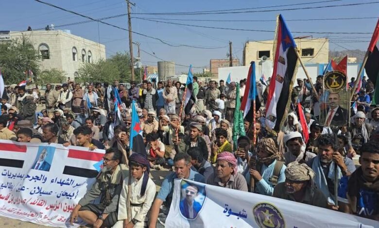 مهرجان جماهيري حاشد في بيحان احتفاءً بانتصارات القوات الجنوبية والمطالبة بإعلان دولة الجنوب