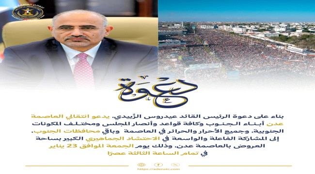 إن هذا الاحتشاد المرتقب، الذي يُنتظر أن يكون الأكبر من نوعه والأكثر اتقاداً في زخم الثورة، يأتي تعبيراً عن إرادة شعب الجنوب الصامد والصابر، وتأكيداً على موقفه الثابت والراسخ خلف قيادته السياسية حتى انتزاع كامل التطلعات المشروعة في استعادة الدولة الجنوبية كاملة السيادة على حدود ما قبل 21 مايو 1990م.