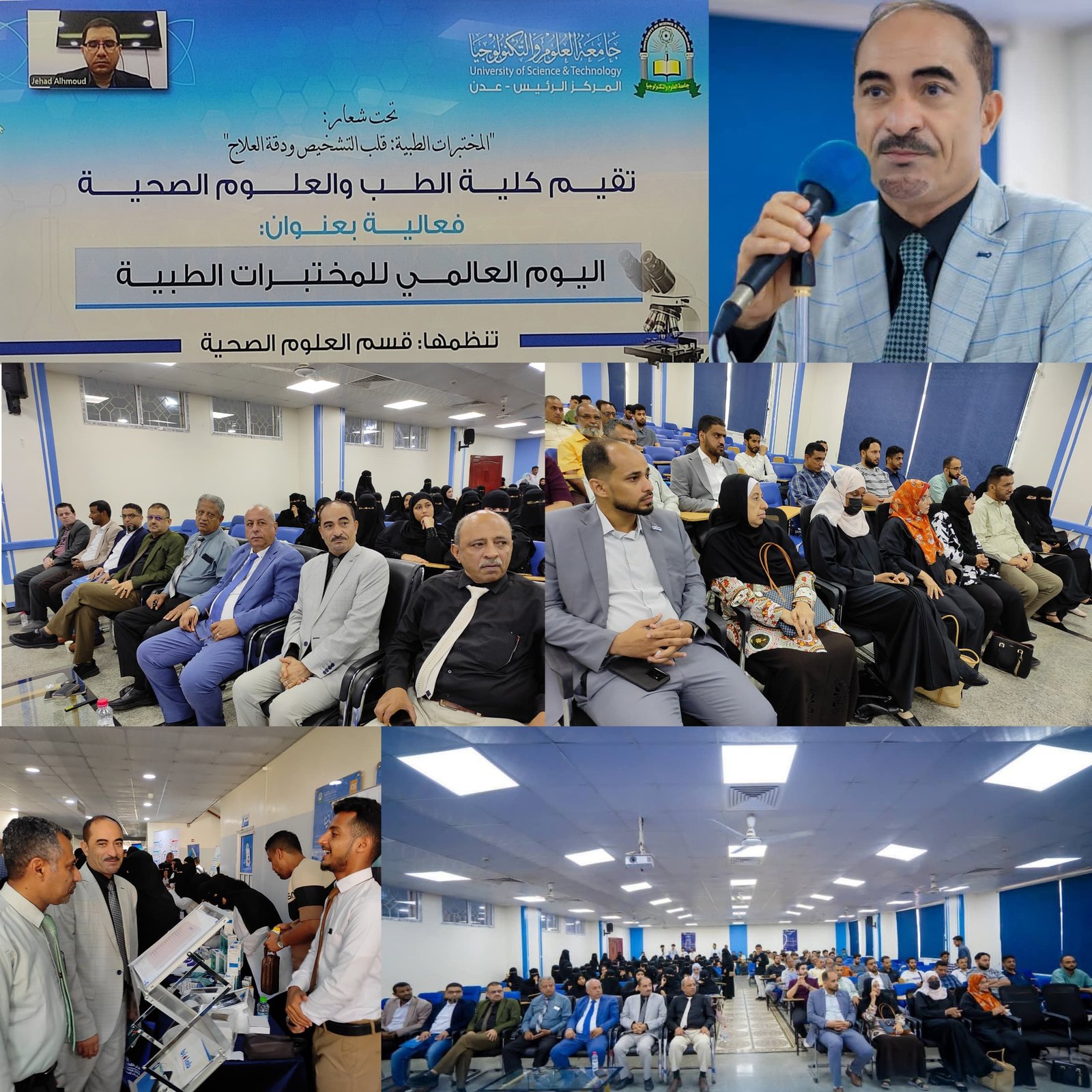 احتفلت كلية الطب والعلوم الصحية بجامعة العلوم والتكنولوجيا في العاصمة عدن، اليوم، باليوم العالمي للمختبرات الطبية، في أجواء علمية وإنسانية مميزة، تحت شعار “المختبرات الطبية.. قلب التشخيص ودقة العلاج”. جاء ذلك من خلال فعالية علمية متكاملة نظمها قسم العلوم الصحية، جمعت بين المعرفة الأكاديمية والتوعية المجتمعية، مسلطة الضوء على الدور الحيوي الذي تؤديه المختبرات الطبية في دعم التشخيص الدقيق وتحسين جودة الرعاية الصحية.