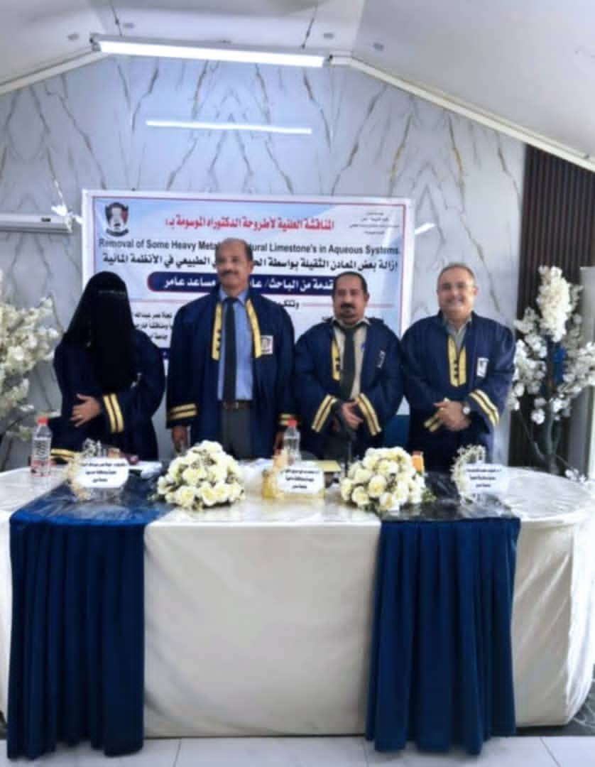 وتناولت الأطروحة موضوعا علميا مهما في مجال الكيمياء البيئية، حيث ركزت على استخدام الحجر الجيري الطبيعي كوسيلة فعالة لإزالة بعض المعادن الثقيلة من الأنظمة المائية، بما يسهم في إيجاد حلول تطبيقية لمعالجة تلوث المياه.