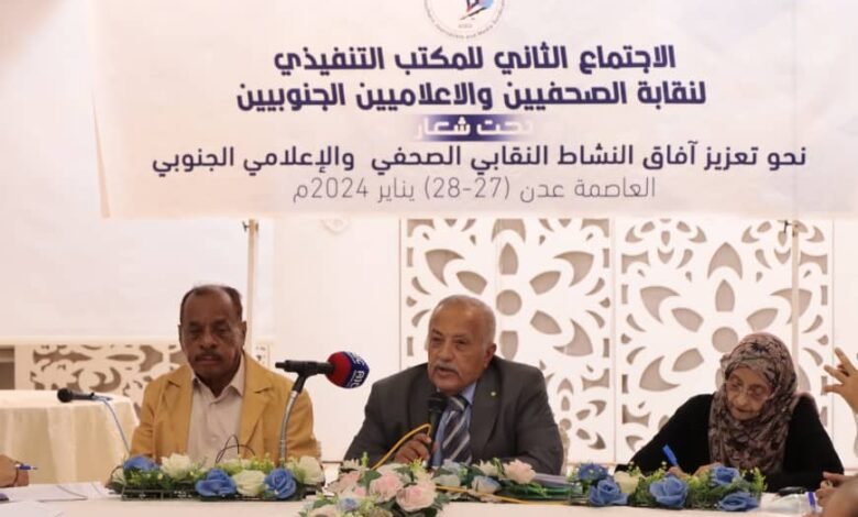 وفي افتتاحية الاجتماع الذي يعقد على مدار يومين، أكد النقيب باحشوان أن انعقاد المكتب التنفيذي للنقابة يأتي بعد مرور عام على تأسيس النقابة الموافق “18 يناير من العام الماضي 2023م” ، مشيرا إلى ان تأسيس هذه النقابة شكل انعطافة محورية في لم شتات الصحفيين والإعلاميين الجنوبيين بعد سنوات من التهميش والاقصاء التي مارستها سلطة الاحتلال اليمني.