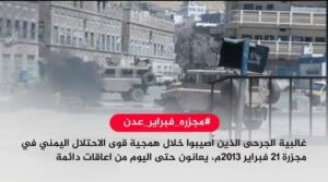 وتأتي ذكرى مجزرة 21 فبراير لتحكي الصمود الاسطوري لشعب الجنوب العظيم وإرادته الصلبة وعزيمته الحرة في وجه قوى الإحتلال اليمني وإفشال مشاريعها المنتقصة من حق شعب الجنوب في الحرية والإستقلال واستعادة دولة الجنوب الفيدرالية المستقلة على كامل ترابها الوطني وعاصمتها السياسية عدن ، وتأكيداً على أن شعب الجنوب أصبح اليوم يمتلك قوات مُسلحة جنوبية صلبة، وممثل سياسي، قادران على حماية شعبهما، من أي اعتداءات أو ممارسات همجية قد تحاول قوى صنعاء اليمنية الإرهابية بشقيها (الحوثي الإخواني) فعلها ضد أبناء الجنوب.