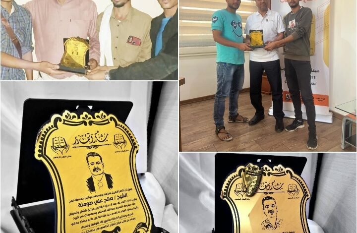 كرم طلاب السكن الجامعي لمديرية الملاح بمحافظة لحج ، نائب مدير الشركة الوطنية للأسمنت ،الأستاذ سالم بدر سالم، بدرع القطاع الطلابي ، تقديرا لجهوده الكبيرة في دعم طلاب المديرية وتذليل الصعاب التي رافقتهم في مسيرتهم التعليمية.