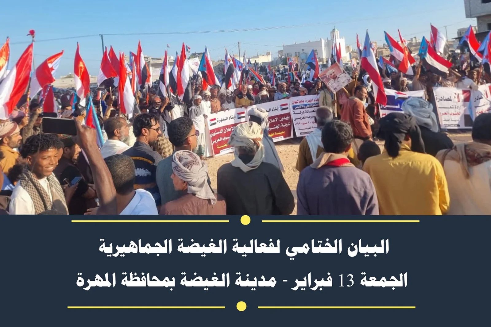 وتجسيداً لروح الصمود والثبات التي عبّر عنها أبناء محافظة المهرة وكافة محافظات الجنوب، واختتاماً لهذه الفعالية الجماهيرية الحاشدة في مدينة الغيضة: